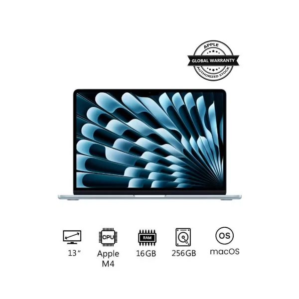 Experience powerful performance and ultra-portability with the Apple MacBook Air MC6T4. Featuring the advanced Apple M4 chip, a vibrant 13-inch display, and a sleek Sky Blue finish, this laptop is designed for both productivity and creativity on the go. Enjoy seamless multitasking with 16GB RAM and ample storage with a 256GB SSD, all running on the intuitive macOS.
