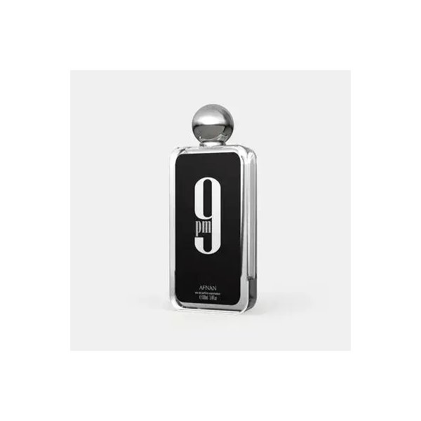 9 PM Eau de Parfum (EDP) by Afnan opens with apple, cinnamon, wild lavender, and bergamot. The heart reveals orange blossom and lily-of-the-valley. The fragrance settles into vanilla, tonka bean, amber, and patchouli.